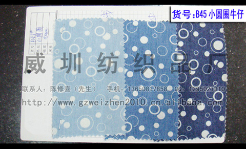 長期供應(yīng) 小圓圈牛仔面料 洗水牛仔面料 工藝印花洗