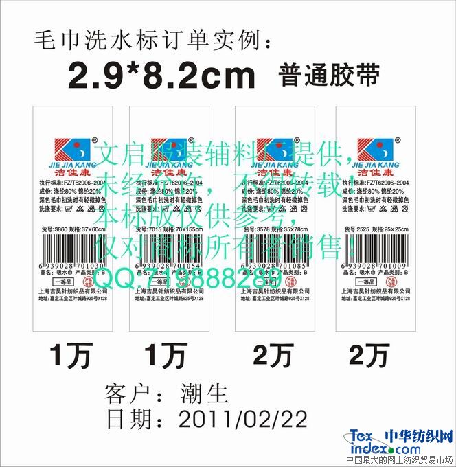 長期供應(yīng) 毛巾洗水標簽 毛巾標簽 毛巾條碼標 |