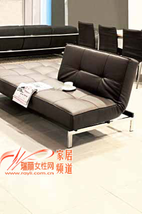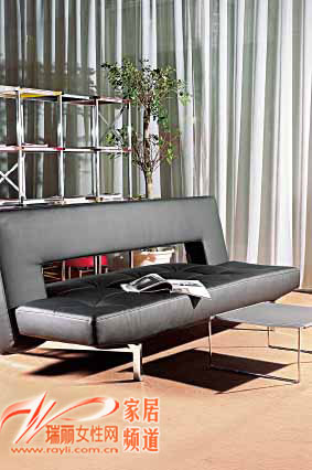 黑色皮質(zhì)面料和寬大體型為此款沙發(fā)床帶來(lái)從容大氣的感覺(jué),銀色鋼架底座和同材質(zhì)的低姿茶幾相映生輝,在床底加裝曲木板條和彈簧,使其保證人體長(zhǎng)期的躺臥而不變形。