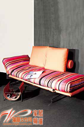 橙色彩條帶來時(shí)尚感覺,配以鋁合金支腿,更為現(xiàn)代、利落。這款三折沙發(fā)床小巧、簡(jiǎn)潔,兩側(cè)均可收起,非常適合小空間使用。