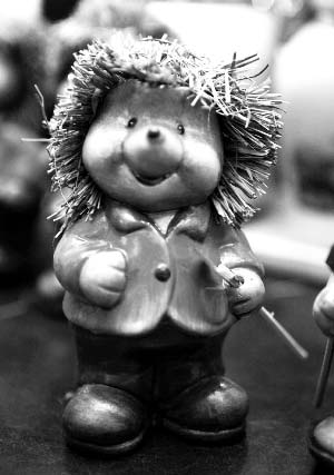 絨毛玩具類型的老鼠挺多,比如米老鼠、卡通鼠等等。但是這個(gè)飾品的特點(diǎn)就在于能把陶藝和絨毛結(jié)合到一起,形象更加逼真和可愛。據(jù)店員介紹,原來是先用陶燒制成老鼠的模樣,然后粘上毛茸茸的鼠皮、眼睛、尾巴和胡子,最后呈現(xiàn)出一個(gè)異常可愛的老鼠飾品。在鼠年即將來臨的時(shí)候,擺在家里,讓人的心情也能隨著可愛、俏皮的小老鼠的笑而舒暢起來。