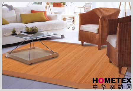 竹地毯是近年來地毯家族中出現(xiàn)的新成員,它采用優(yōu)質(zhì)竹子為原料, 由多根經(jīng)過精加工的竹條組成,所有竹條均經(jīng)過防蟲、防霉、高溫蒸煮等方法進(jìn)行科學(xué)處理, 竹條的寬度可根據(jù)客戶的需要進(jìn)行制作。與傳統(tǒng)地毯相比,竹地毯具有用料天然、安裝簡(jiǎn)便、便于清潔、涼爽舒適等特點(diǎn)。竹地毯的色彩多使用棕色、咖啡色等顏色,外觀古樸、典雅,有些還輔以獨(dú)特的花紋或彩繪,仿佛是一幅幅精美的工藝品。