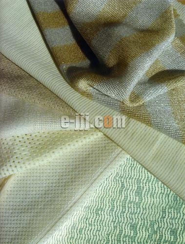 半透明膜紙、液態(tài)外觀的加工質(zhì)感體現(xiàn)出平紋、褶皺的肌理,棉和人造纖維混紡,平紋織物印花,色織、中薄型提花為其技術(shù)特征,光色主要為平淡、柔和。