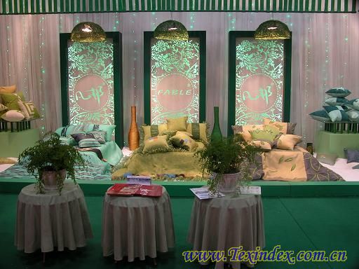 仙女下凡,是春意盎然,是碧水藍天……走進第三屆浙江家紡展,凡邦獨特的展位設計,就吸引了大眾的目光,一片綠色,閃爍的燈光,訴說著春天的故事,異域風味的品牌名字,別具一格的產品設計,深深的融入了自然,誰又會知道這是個來自余杭的品牌?!小家碧玉中盡顯西歐時尚氣息,看著產品讓人思緒綿綿,暢游海洋!