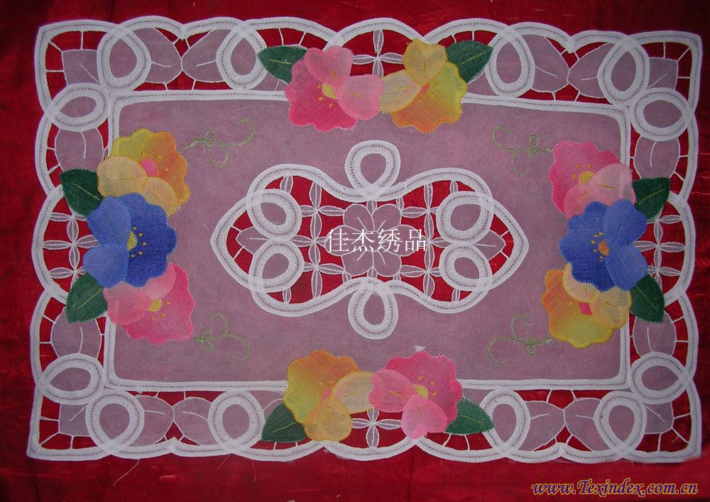 規(guī)格:33*48/30*45/15*30 纖維材料:100%滌 品種:補(bǔ)花盤墊 織制方法:補(bǔ)繡 工藝特點(diǎn):手工 產(chǎn)地:山東 淄博